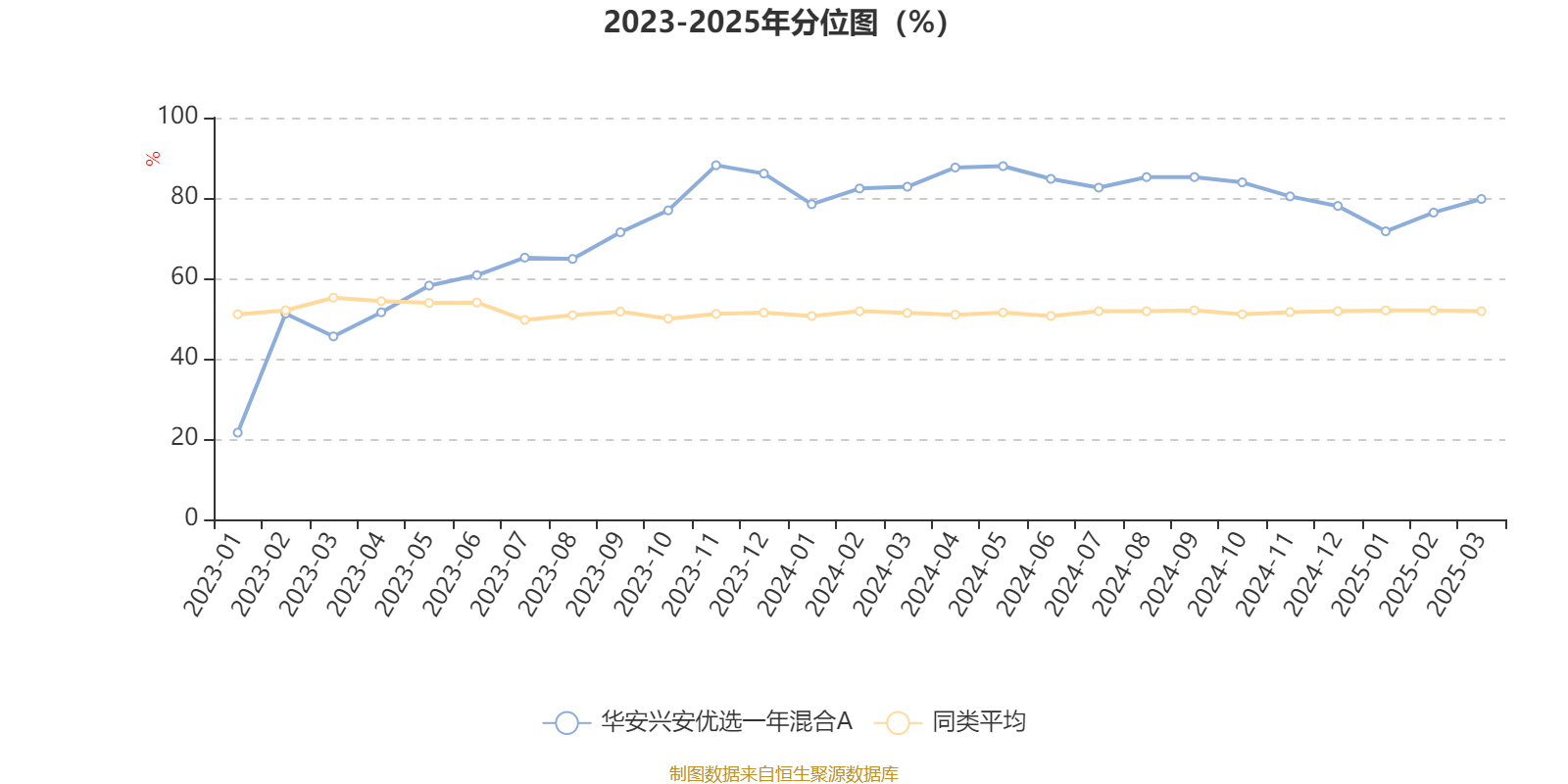 通过所选区间该基金净值增长率分位图,可以观察该基金与同类基金业绩比较情况。图为坐标原点到区间内某时点的净值增长率在同类基金中的分位数。