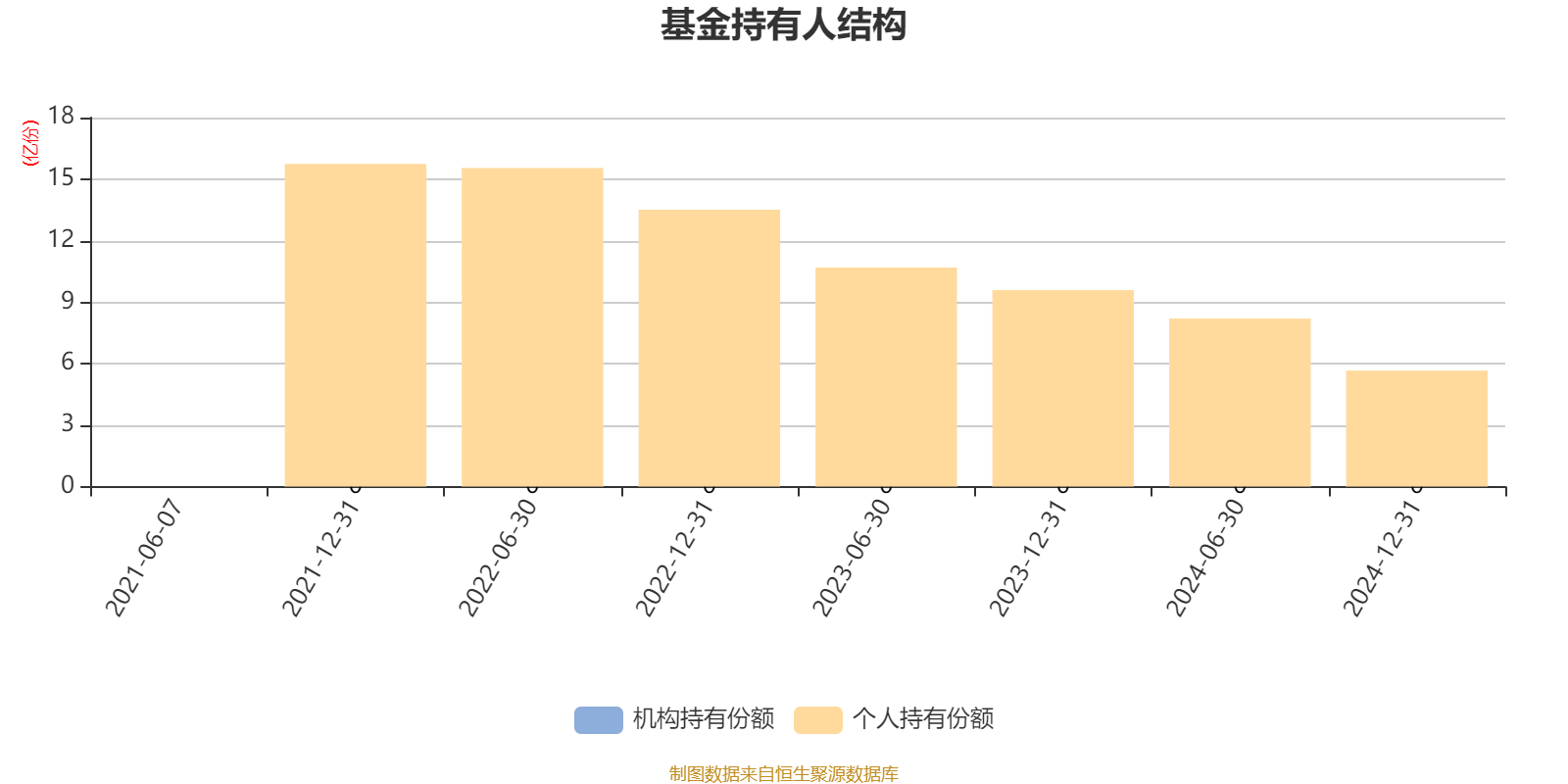 截至2024年12月31日,基金持有人共计6425户,合计持有5.66亿份。机构持有份额占比0.00%,个人投资者占比100.00%。